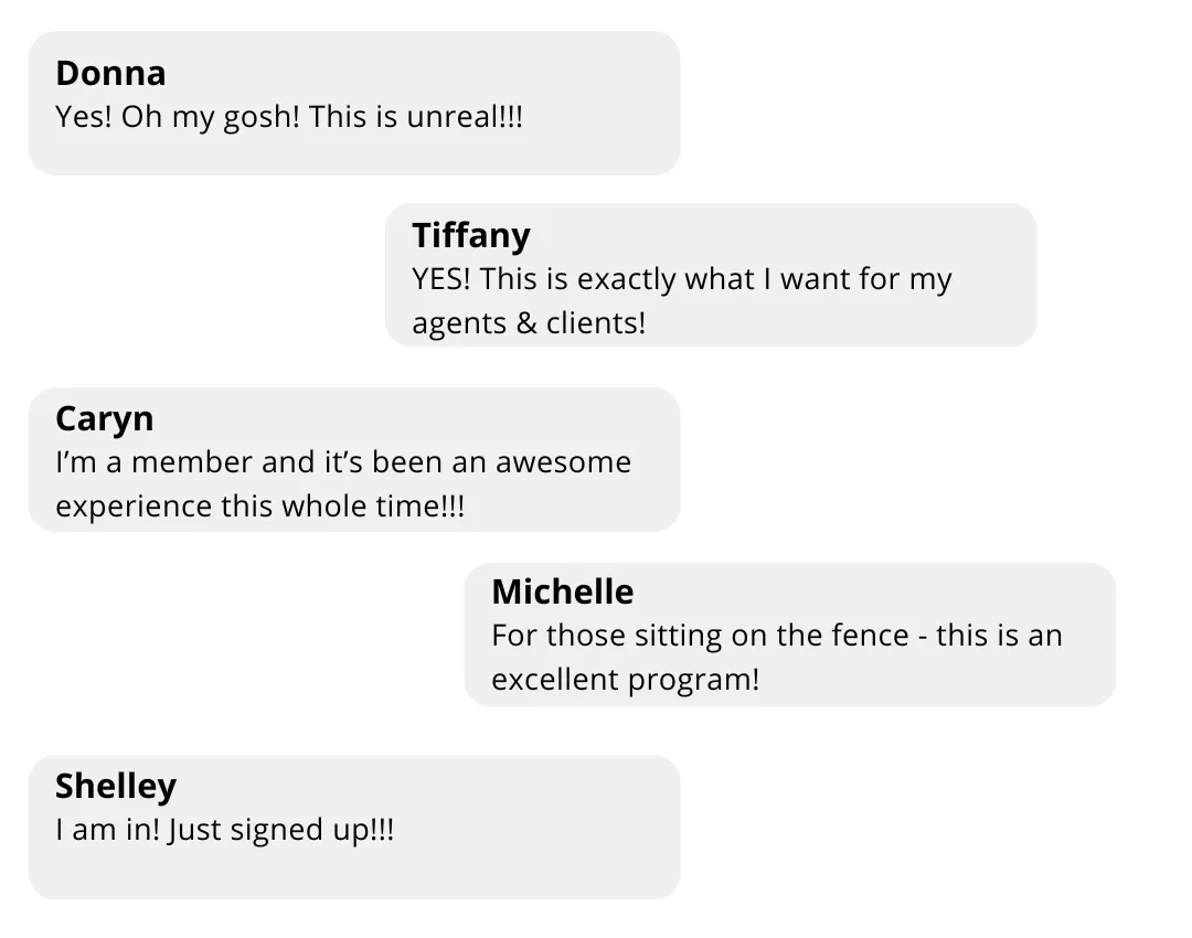 Join 38+ real estate & marketing experts who have been where you & are ready to support you in your business. Over 5 days you’ll learn & connect with women in real estate from all around the world, all from the comfort of your home!